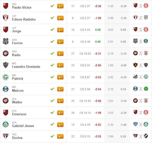 Vale ressaltar que o time não terá margem de preço fixo, afinal, de acordo com as particularidades da rodada é que podemos determinar as boas opções para valorização. Com isso, o Tio Patinhas Brasil vai a campo com os seguintes jogadores: