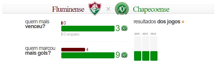 O Fluminense perdeu todas as partidas em que fez contra a Chapecoense jogando no Rio de Janeiro. A Chape sempre superou o Tricolor Carioca desde que chegou a Elite em 2014.