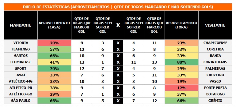 O Vitória é o pior mandante do Brasileirão até o momento (5 pontos conquistados) e enfrenta a Chape que não marcou um gol sequer nas suas duas últimas partidas fora de casa.