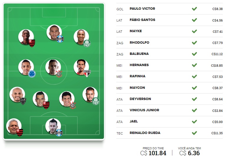 Obs: Começamos com um Time recém criado no Sistema do Cartola para o 2º Turno, portanto iniciamos com apenas C$100,00.