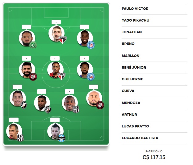 Obs: Começamos com um Time recém criado no Sistema do Cartola para o 2º Turno, portanto iniciamos com apenas C$100,00.