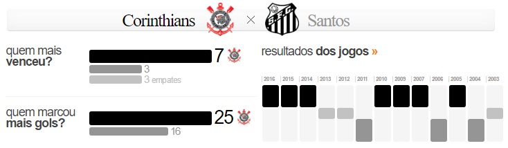 O Corinthians é hegemônico jogando sob o seu mando de campo contra o Peixe. Nos últimos três anos o Santos foi derrotado pelo Timão.