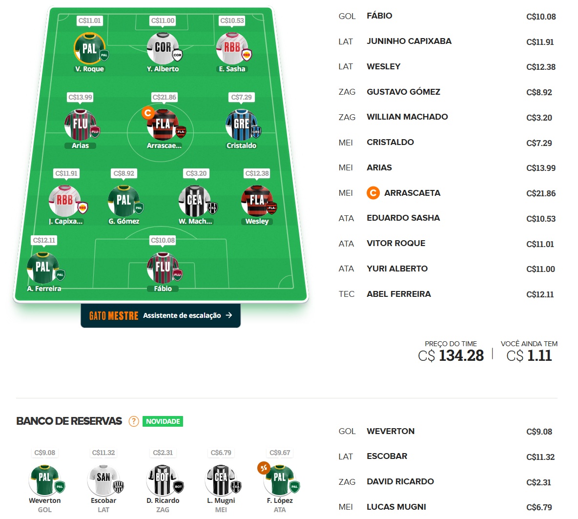 Como características do nosso time MITO, escolheremos alguns jogadores com maiores chances de ir bem, independente se atuam dentro ou fora de casa, porém cabem dois ou três jogadores diferentes para "temperar" e dar aquela ousada na escalação, por isso escolheremos um bom capitão e também algumas apostas.