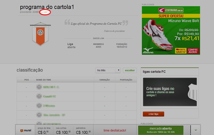 Mas, se por acaso o cartoleiro não deseja mais fazer parte de uma liga siga a instrução abaixo.